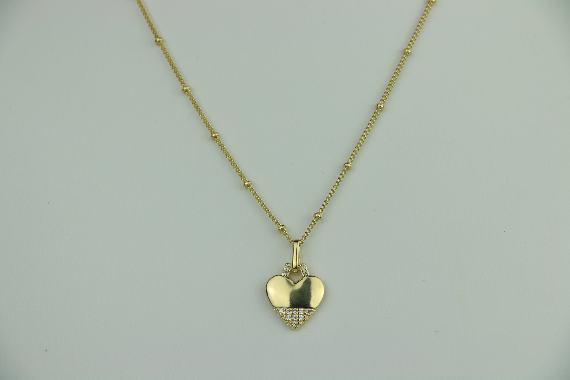 18k Gold Filled Heart Pendant With Cubic Zirconia Stones Detail. Mi Corazón necklace is perfect for everyday use. come with a standard 18in satellite chain