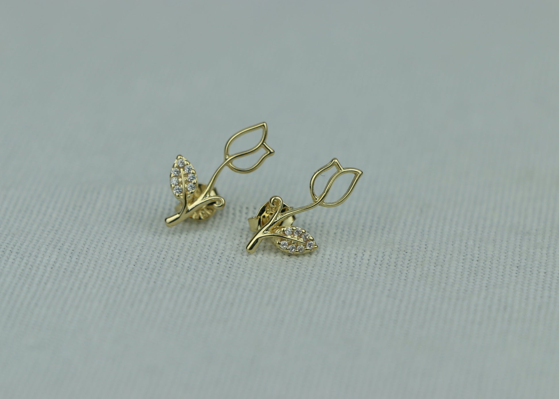 Cute and charming 18k Gold Filled Tulip Studs With Cubic Zirconia Stones. Perfect for extra femininity or your little girls.